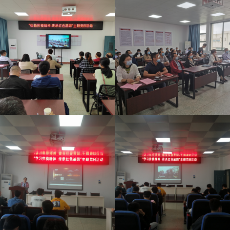 5月10日,pa娱乐游戏在机电楼406、304会议室开展“弘扬劳模精神,传承红色基因”主题党日活动,80余名师生党员参加活动。