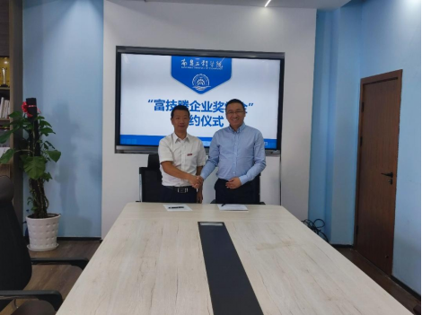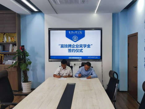最后,双方签订设立“富技腾企业奖学金”的协议,并合影留念。