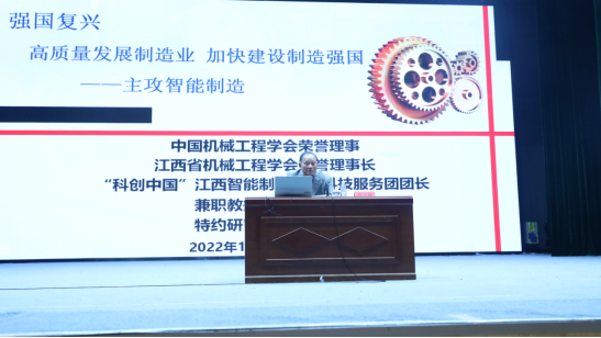 典礼上,李立德教授作《高质量发展制造业,加快建设制造强国》专题讲座。李教授以他独特的见解向同学们讲解了中国制造业发展面临的形势,建设制造强国主要技术路线,江西智能制造(产业)面临的机遇与挑战等。他指出,建设制造强国主要要依靠技术创新,建立制造业评价体系,主攻智能制造建设制造强国,建设网络强国,助推智能制造高质量发展。
