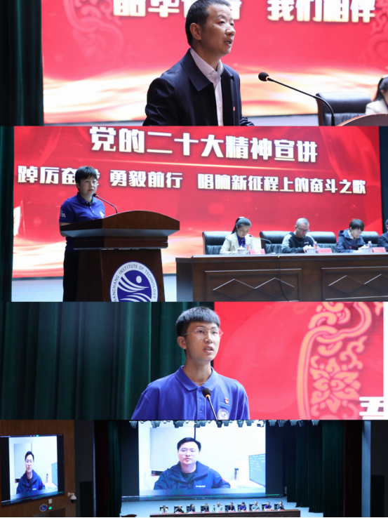 2022车辆工程专业仲崇毅同学作为新生代表发言。优秀员工段年嵩、郭志清和熊志文作为求学深造、技术骨干、创新创业三方面的代表,用心录制VCR,为同学们送来宝贵经验和真诚祝福。