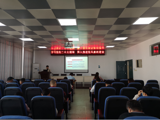 夏志红首先带领大家学习了党的二十大报告中有关全面从严治党的重要论述,强调了党风廉政建设取得的伟大成就和重要意义,重点分析了建党百年党风廉政建设的演进与启示。夏志红从中国共产党成立后党风廉政建设的脉络梳理、党风廉政建设的行动逻辑、党风廉政建设的哲学思考三方面带领大家一起回溯、审视、思考了党风廉政建设的百年演进和启示,引导大家认识全面从严治党取得显著成效,但仍然任重道远,全面从严治党永远在路上,要永远吹冲锋号。