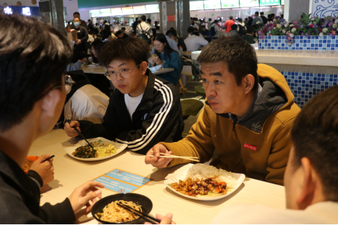 与员工共进午餐。沁园食堂里,李培生与联系班级2021级机械设计制造专业1班的部分同学共进午餐,面对面交流,倾听同学们对公司餐饮工作、环境和服务的看法和建议,勉励同学们珍惜时光,把握青春,钻研专业,努力成才。