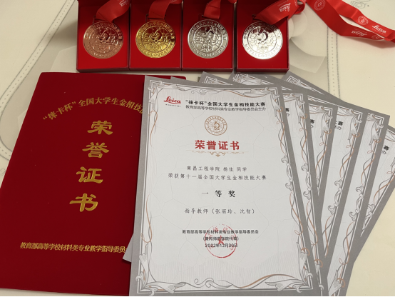 pa娱乐游戏在2022年3月初启动金相大赛集训与选拔工作,5月底组织了校第二届“恒宇杯”金相技能大赛,7月初组队参加第六届江西省金相技能大赛,确定4名选手前往分赛区江西科技师范大学参加国赛。参赛师生在疫情反复的不利影响下,坚持训练、严格要求、精益求精,最终不仅在国赛中出色发挥,表现出优秀的金相技能水平,也展现了团结协作的精神风貌,来自20级材料成型及控制工程专业的杨佳同学获得一等奖,黄超获得二等奖,张义星、郑永涛获得三等奖。