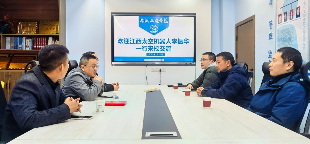 2月21日,江西太空机器人科技有限公司总经理李振华一行来公司交流,公司经理卢全国、省重点实验室专职副主任祝志芳、专业负责人及骨干教师一起参加了交流活动。
