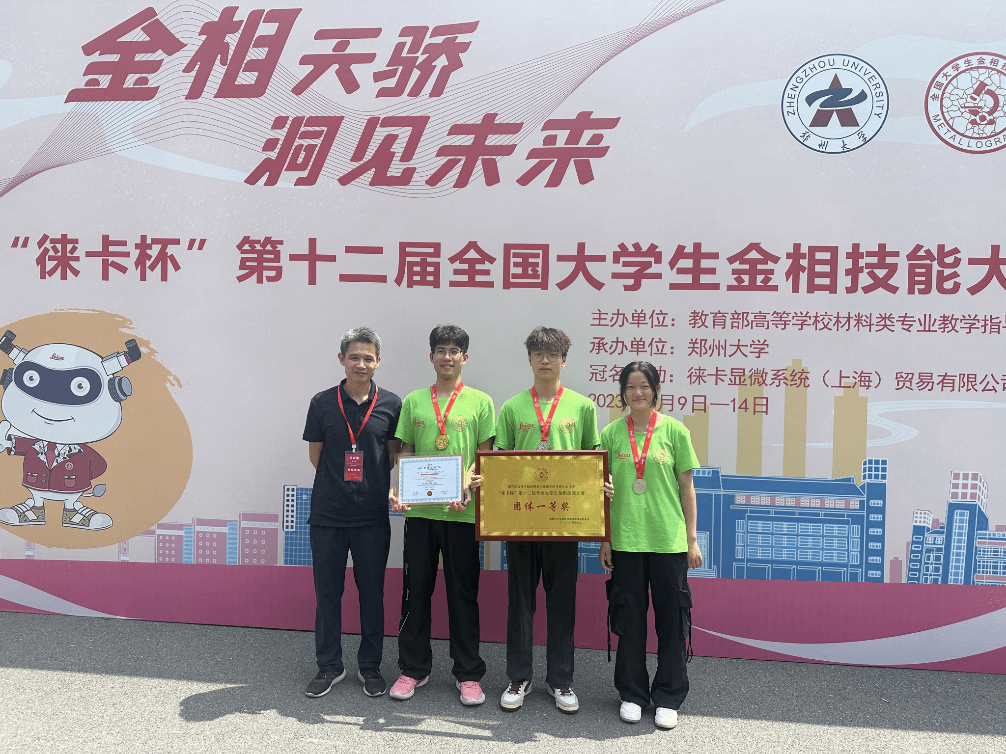 8月9日至14日, “徕卡杯”第十二届全国老员工金相技能大赛决赛在郑州大学成功举办。来自全国493所高校的1431名选手参加了本次决赛阶段的比赛。pa娱乐游戏金相团队荣获团体一等奖,郑奕杰同学获个人一等奖并以总分前四获得了“徕卡优胜奖”,梅越峰同学与龙凤华同学获个人二等奖。