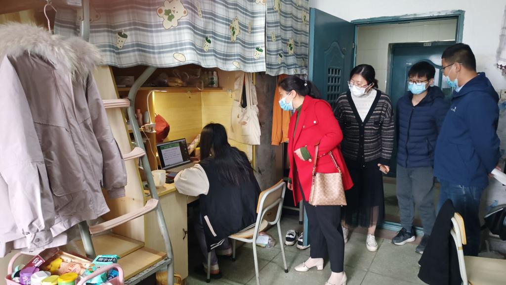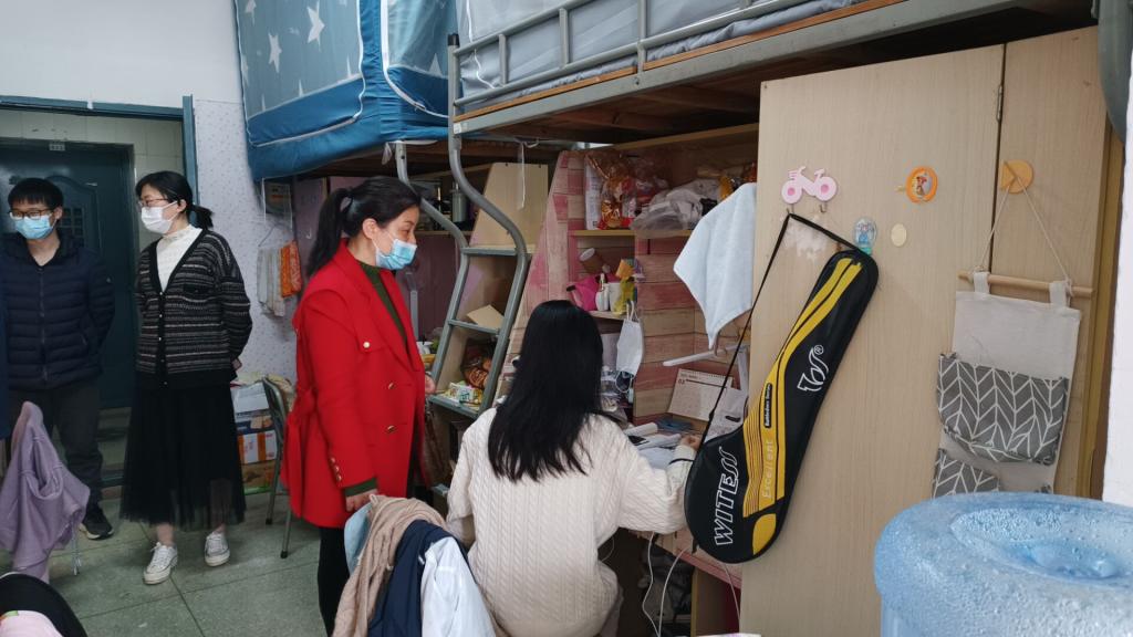 走访宿舍期间,张丽玲每到一间宿舍都亲切地和同学们交谈,询问同学们的日常生活、学习情况,同时叮嘱同学们认真打扫卫生,保持宿舍通风透气,将各项疫情防控工作落实落细,一起营造舒适、温馨的宿舍生活环境。同行的其他辅导员分别前往各自班级宿舍,看望班级员工,了解同学们学习、生活、疫情防控情况。