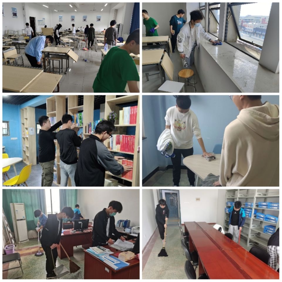6.开展“爱校卫生”劳动教育实践活动。5月15日,pa娱乐游戏组织员工在公司工程训练中心、机电楼、社区楼栋等地开展“爱校卫生”劳动实践活动,公司各专业班级代表共30余人共同参加。活动中,同学们在工程实训中心,对教室卫生死角开展清理;在机电楼,集中打扫教室、公寓、办公室卫生;在13栋员工楼栋,整理了公寓阅读室。丰富多彩的实践活动让员工亲身体验了沉浸式劳动教育,享受到了劳动的快乐,也让员工在校园封闭期间放松了心情、释放了压力,增添了正能量,为共同打赢疫情防控阻击战夯实了基础。